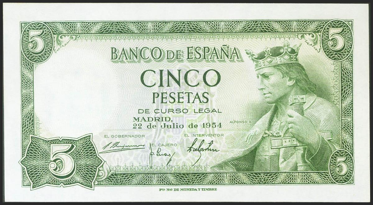 5 Pesetas. 22 de Julio de 1954. Serie V. (Edifil 2021: 466a). Apresto original. SC.