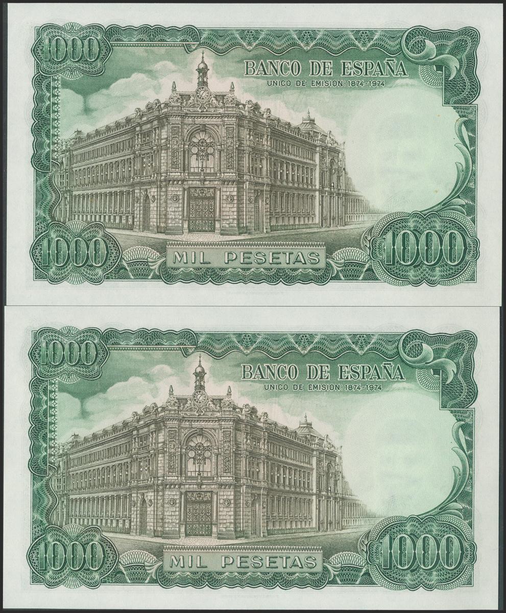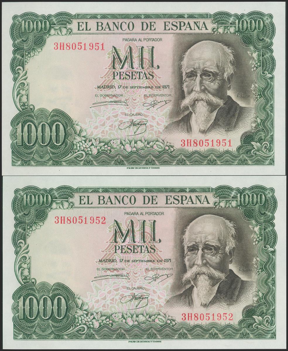 1000 Pesetas. 17 de Septiembre de 1971. Pareja correlativa. Serie 3H. (Edifil 2017: 474c). Apresto original. SC.