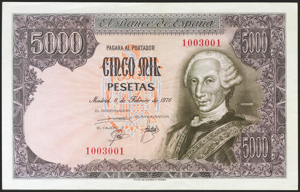 5000 Pesetas. 6 de Febrero de 1976. Sin serie y numeración capicúa. (Edifil 2021: 475). Inusual. EBC.