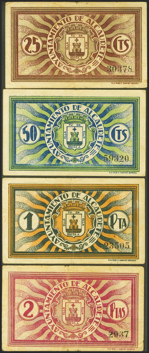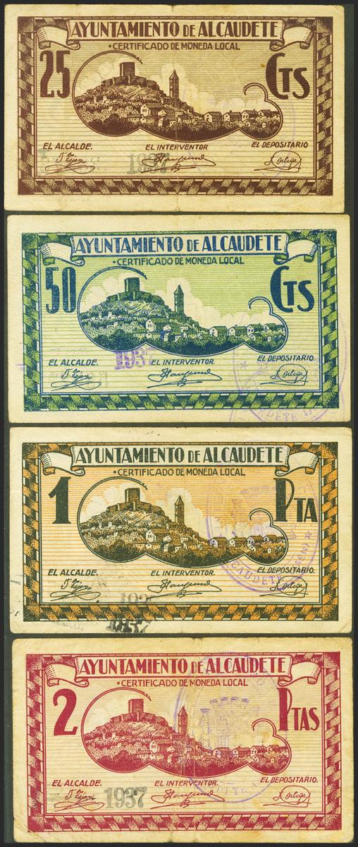 ALCAUDETE (JAEN). 25 Céntimos, 50 Céntimos, 1 Peseta y 2 Pesetas. (1937ca). (González: 310/13). Inusual serie completa. BC-.
