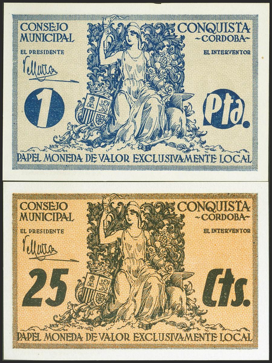 CONQUISTA (CORDOBA). 25 Céntimos y 1 Peseta. (1937ca). (González: 2018, 2020). SC-.