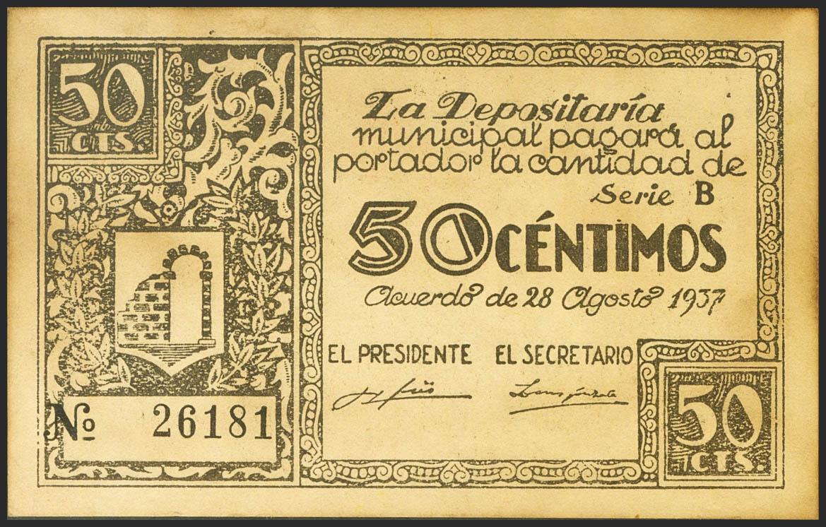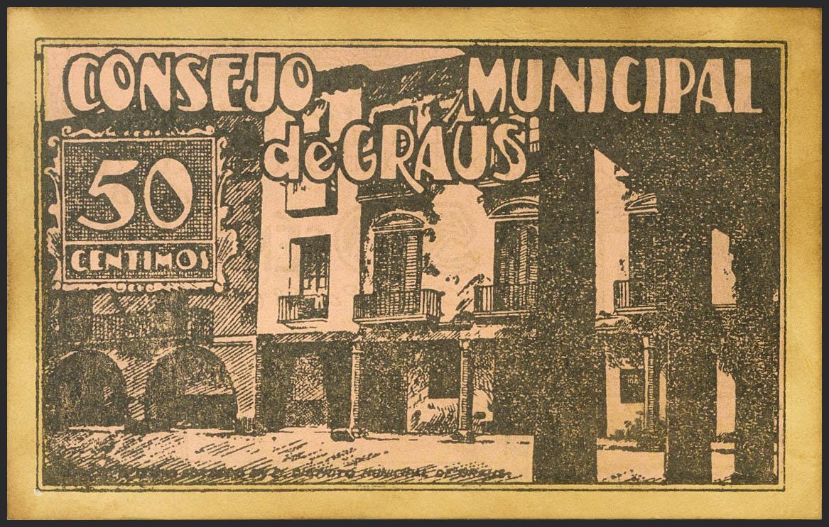 GRAUS (HUESCA). 50 Céntimos. 28 de Agosto de 1937. (González: 2728). SC-.