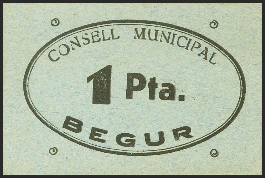 BEGUR (GERONA). 1 Peseta. (1937ca). (González: 6941). Raro. SC.
