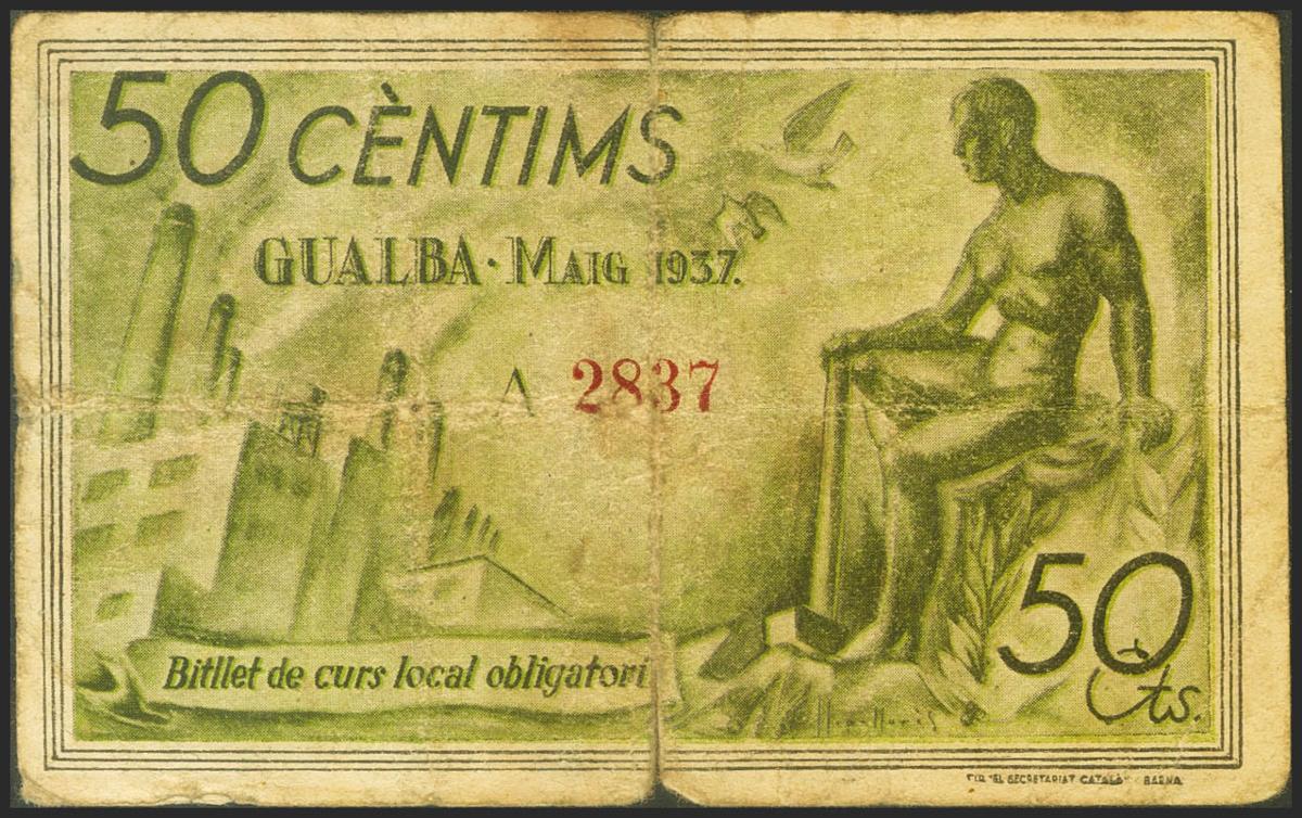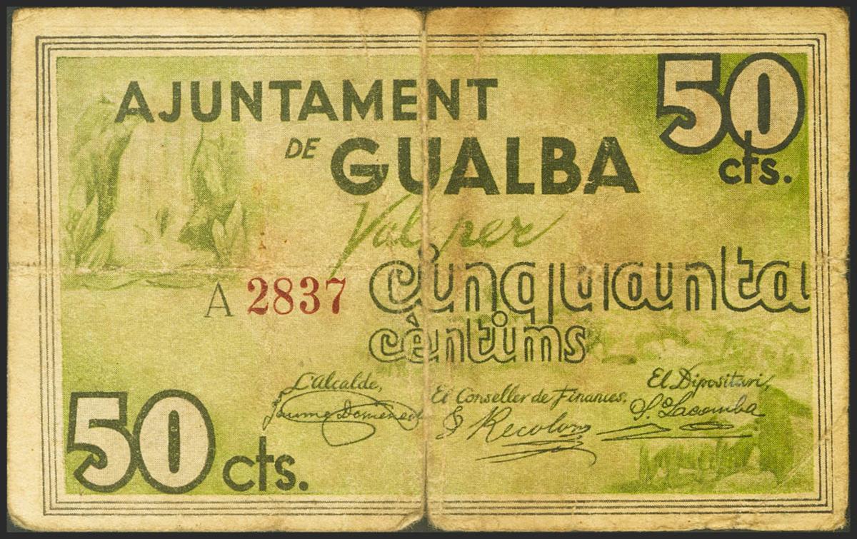 GUALBA (BARCELONA). 50 Céntimos. Mayo 1937. Serie A. (González: 8140). BC.