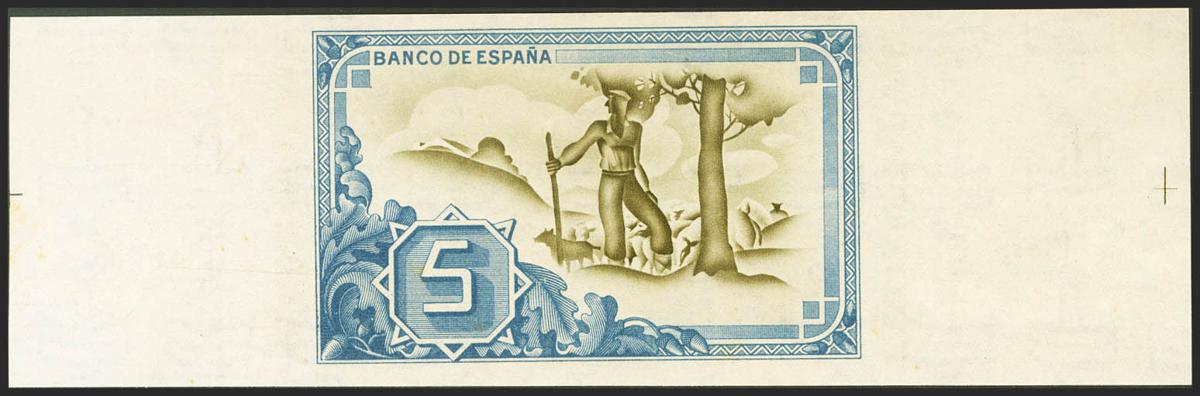 5 Pesetas. 1 de Enero de 1937. Sucursal de Bilbao, antefirma Banco Guipuzcoano. Serie A y sin numeración, con ambas matrices. (Edifil 2021: 386c). Apresto original. SC-.