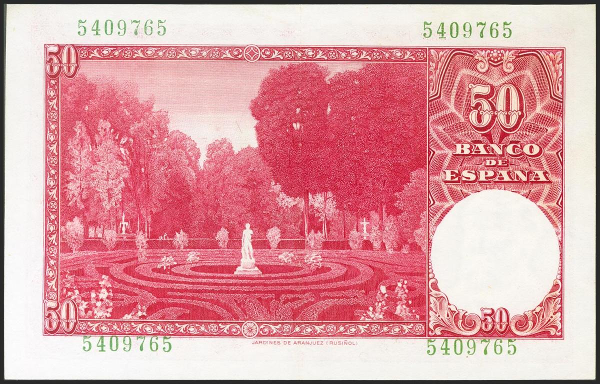 50 pesetas. December 31, 1951. No series. (Edifil 2021: 462). Retains part of the original sizing. Extremely Fine.