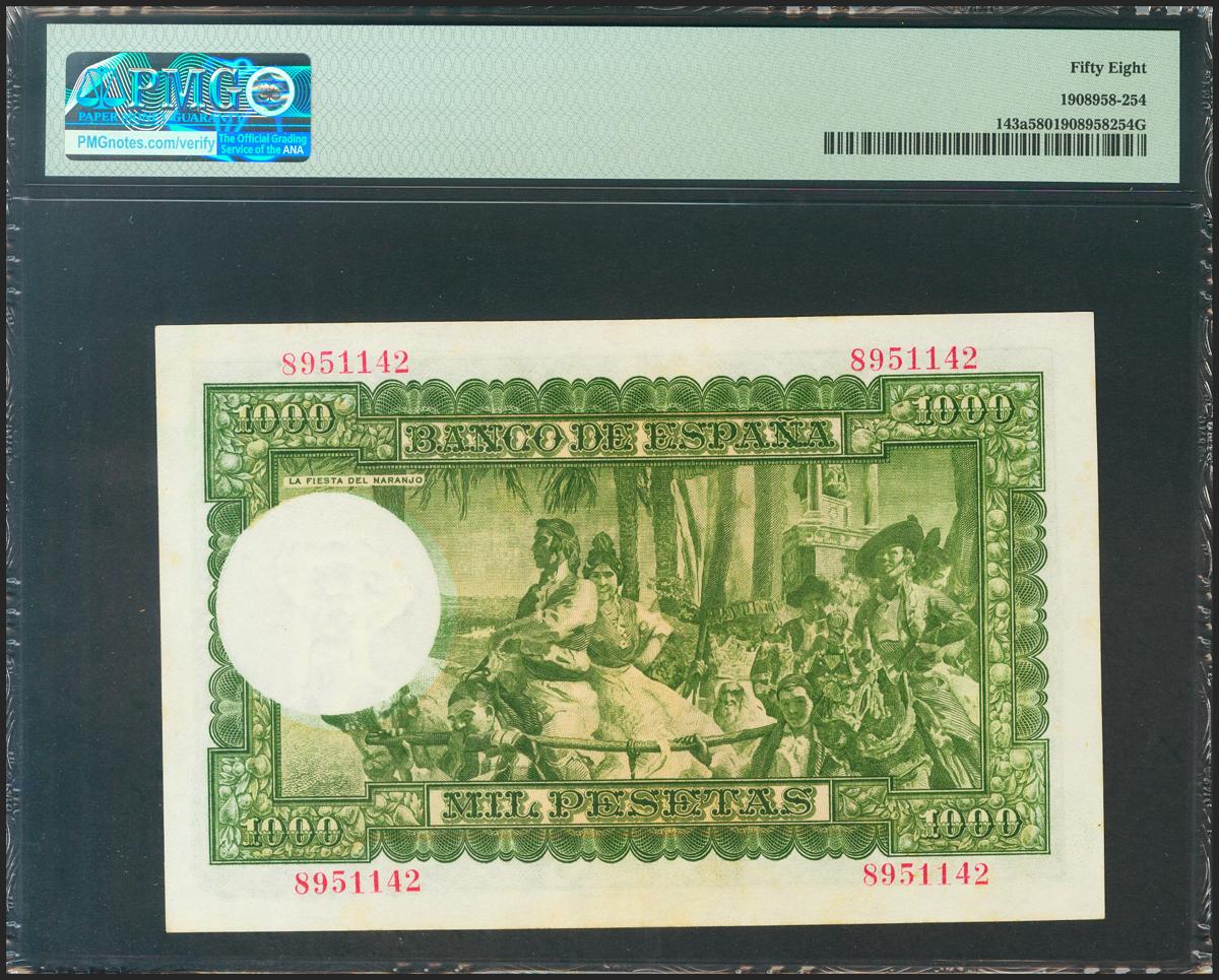 1000 Pesetas. December 31, 1951. No series. (Edifil 2021: 463, Pick: 143a). EBC++. PMG58 encapsulation.