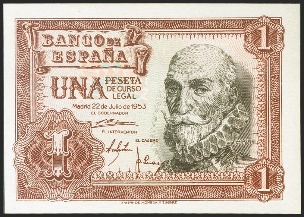 1 Peseta. July 22, 1953. Series L. (Edifil 2021: 465a). Original sizing. Uncirculated.