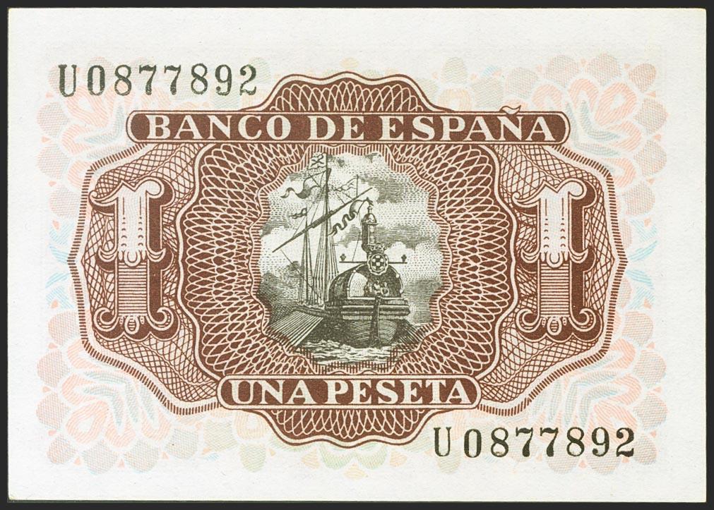 English 1 Peseta. July 22, 1953. Series U. (Edifil 2021: 465a). Original sizing. Uncirculated.