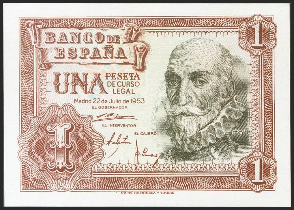 1 Peseta. July 22, 1953. Series 1B. (Edifil 2021: 465b). Original sizing. Uncirculated.