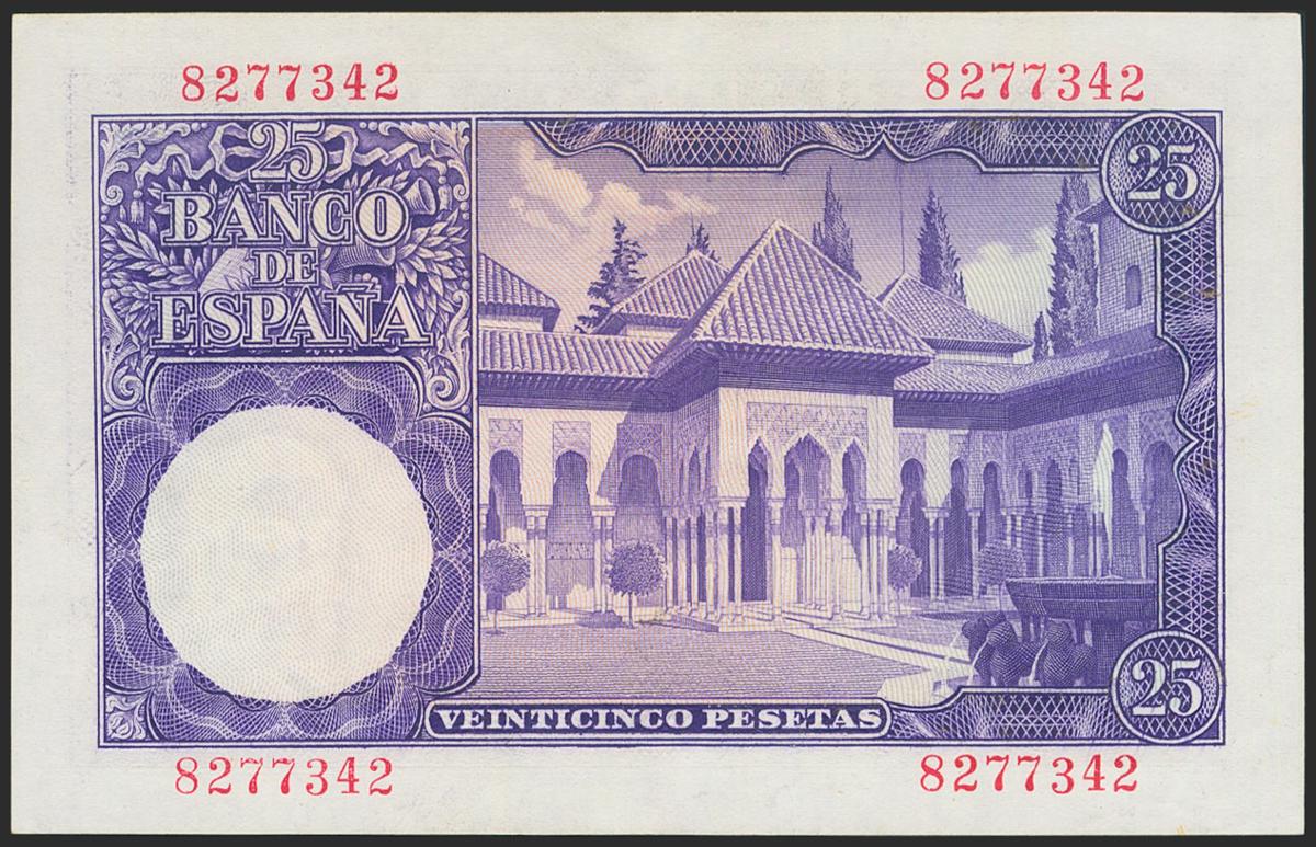 25 pesetas. July 22, 1954. No series. (Edifil 2021: 467). Retains much of the original sizing. Good Extremely Fine.