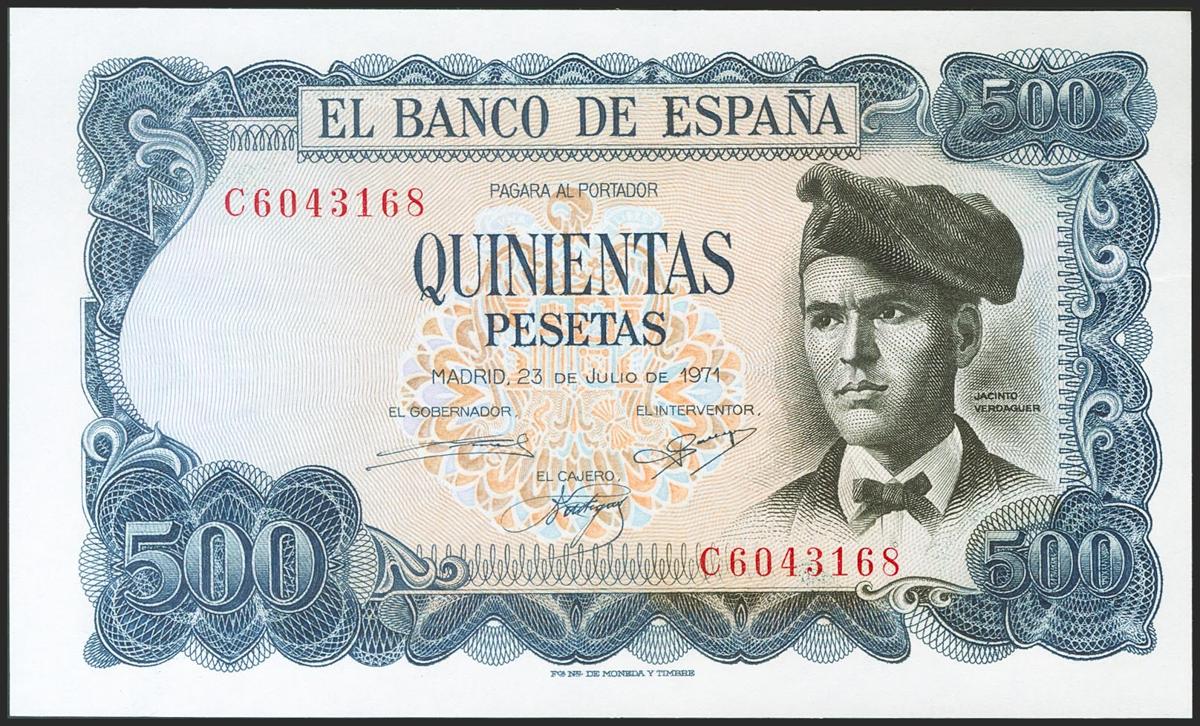 500 pesetas. July 23, 1971. Series C. (Edifil 2021: 473a). Original sizing. Almost Uncirculated.