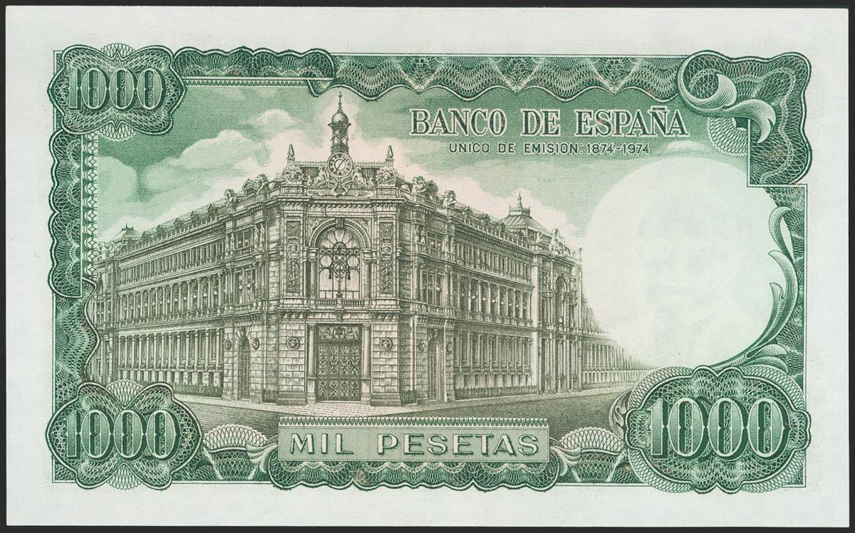 1000 Pesetas. September 17, 1971. No series. (Edifil 2021: 474). Presents much of the original sizing. Good Extremely Fine.
