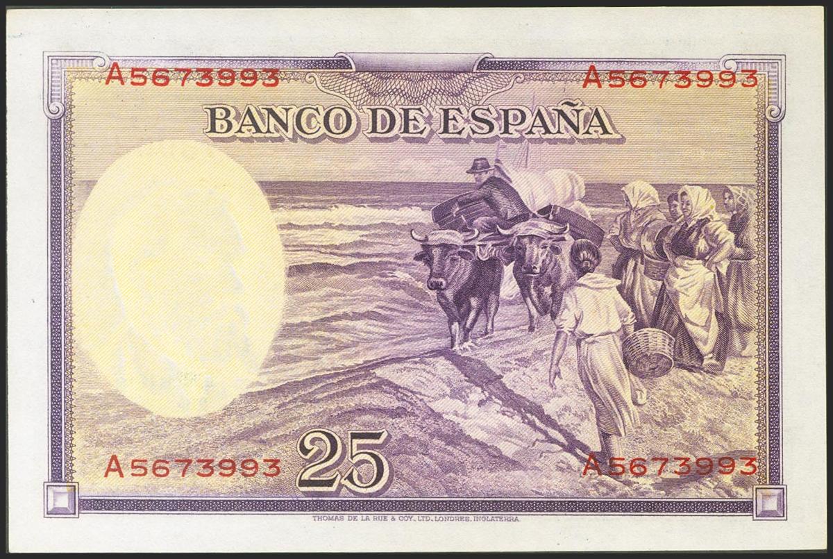 English 25 pesetas. August 31, 1936. Series A. (Edifil 2021: 367a). It retains all its original sizing. Almost Uncirculated.