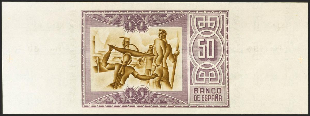 50 pesetas. January 1, 1937. Bilbao branch, presigned by Banco de Vizcaya. Without series and without numbering, with both matrices. (Edifil 2021: 389b). Original sizing. Almost Uncirculated-.