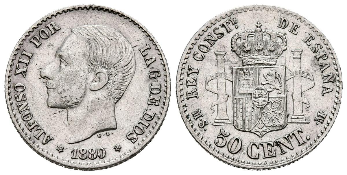 ALFONSO XII (1874-1885). 50 Cents (Ar. 2.51g/18mm). 1880 *80. MadridMSM. (Cal-2019-11). Good Very Fine.