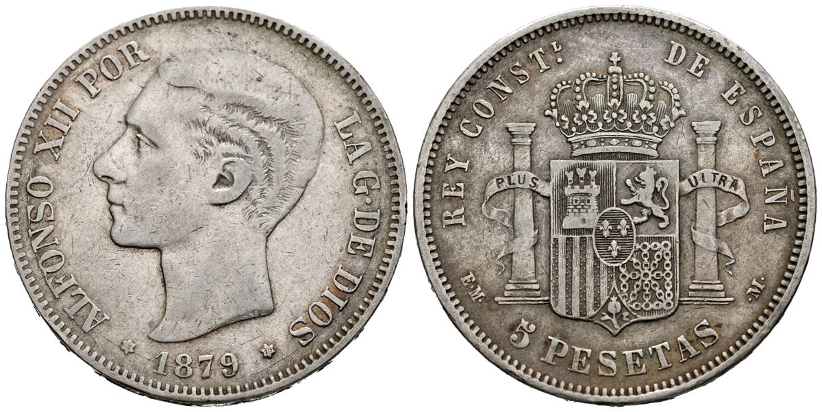 ALFONSO XII (1874-1885). 5 pesetas. (Ar. 24.82g/37mm). 1879 *18-79. Madrid EMM. (Cal-2019-42). Almost Very Fine. cleaned.