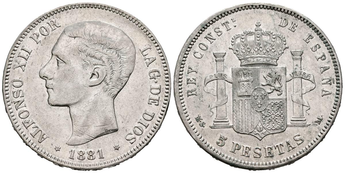 ALFONSO XII (1874-1885). 5 pesetas. (Ar. 24.83g/37mm). 1881 *18-81. MadridMSM. (Cal-2019-44). Good Very Fine.