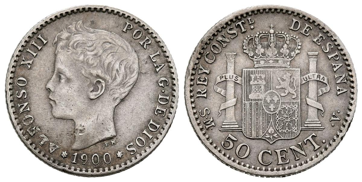 ALFONSO XIII (1885-1931). 50 cents. (Ar. 2.50g/18mm). 1900 *0-0. Madrid SMV. (Cal-2019-45). Good Very Fine.