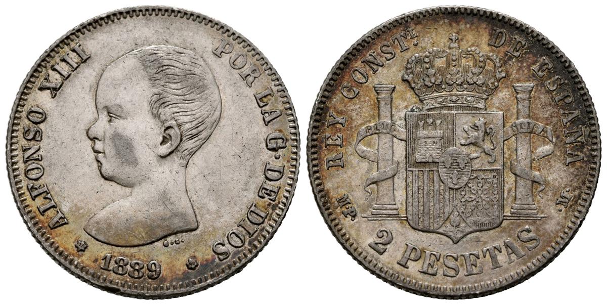 ALFONSO XIII (1885-1931). 2 pesetas. (Ar. 9.92g/27mm). 1889 *18-89. Madrid MPM. (Cal-2019-82). Good Very Fine. Beautiful patina.