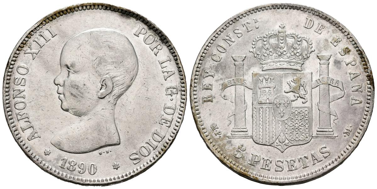 ALFONSO XIII (1885-1931). 5 Pesetas (Ar. 24.97g/37mm). 1890.*18-90. Madrid MPM. (Cal-2019-95). Almost Very Fine.