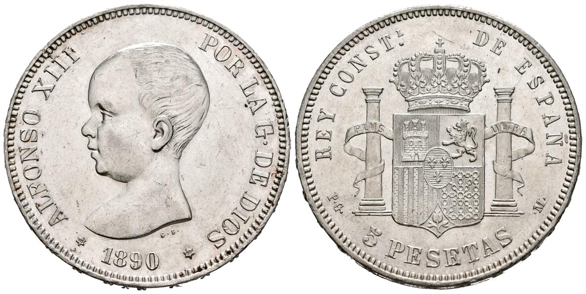 ALFONSO XIII (1885-1931). 5 pesetas. (Ar. 24.82g/37mm). 1890 *18-90. Madrid PGM. (Cal-2019-97). Good Extremely Fine. Little marks. Original Luster . Beautiful specimen, rare like this.