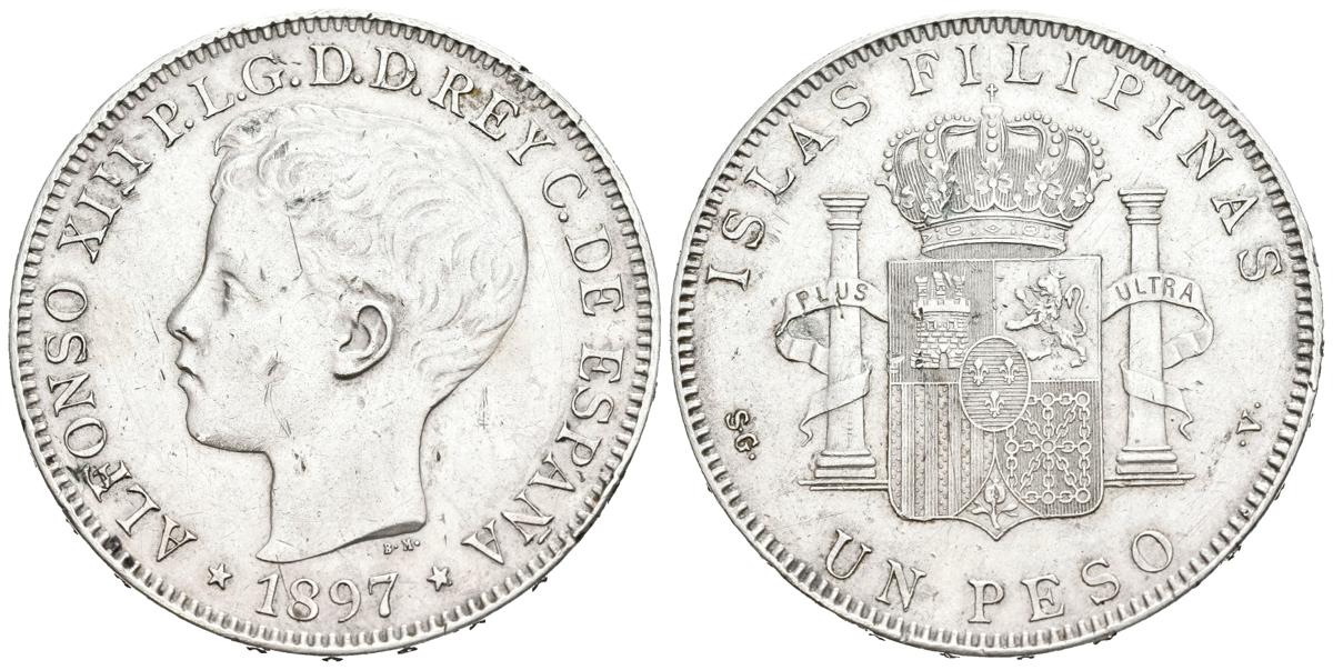 ALFONSO XIII (1885-1931). 1 Weight. (Ar. 25.01g/37mm). 1897. Manila S.G.V. (Cal-2019-122). Good Very Fine. Marks and scratch.