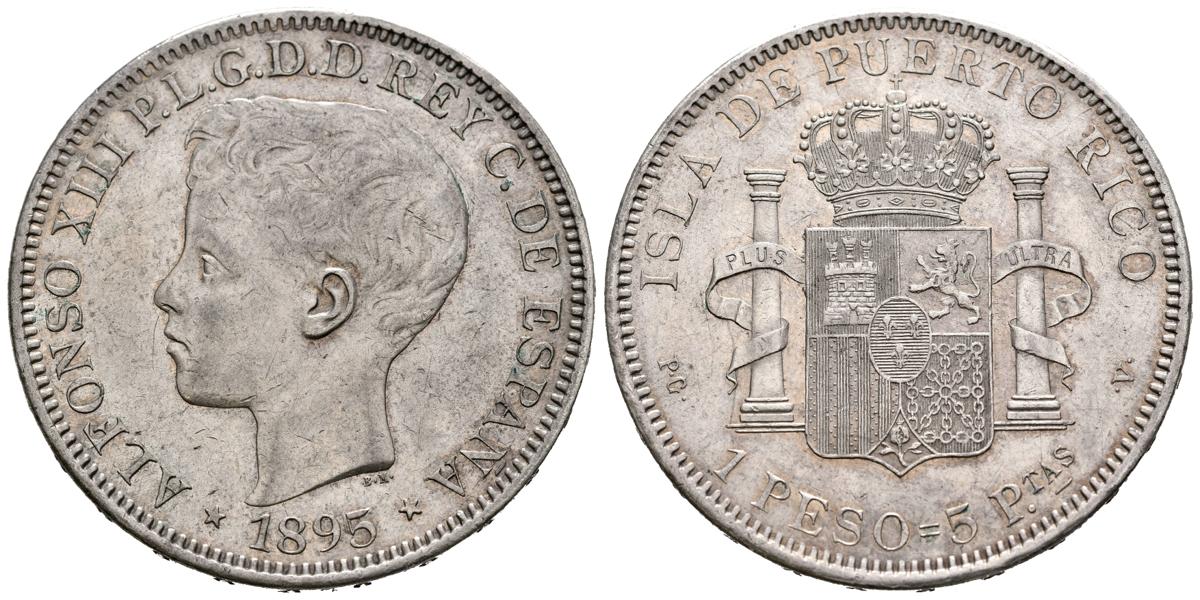 ALFONSO XIII (1885-1931). 1 Weight. (Ar. 25.17g/37mm). 1895. Puerto Rico PGV. (Cal-2019-128). Good Extremely Fine. Very rare specimen and even more so in this spectacular quality, presenting part of the original shine and a slight tone.