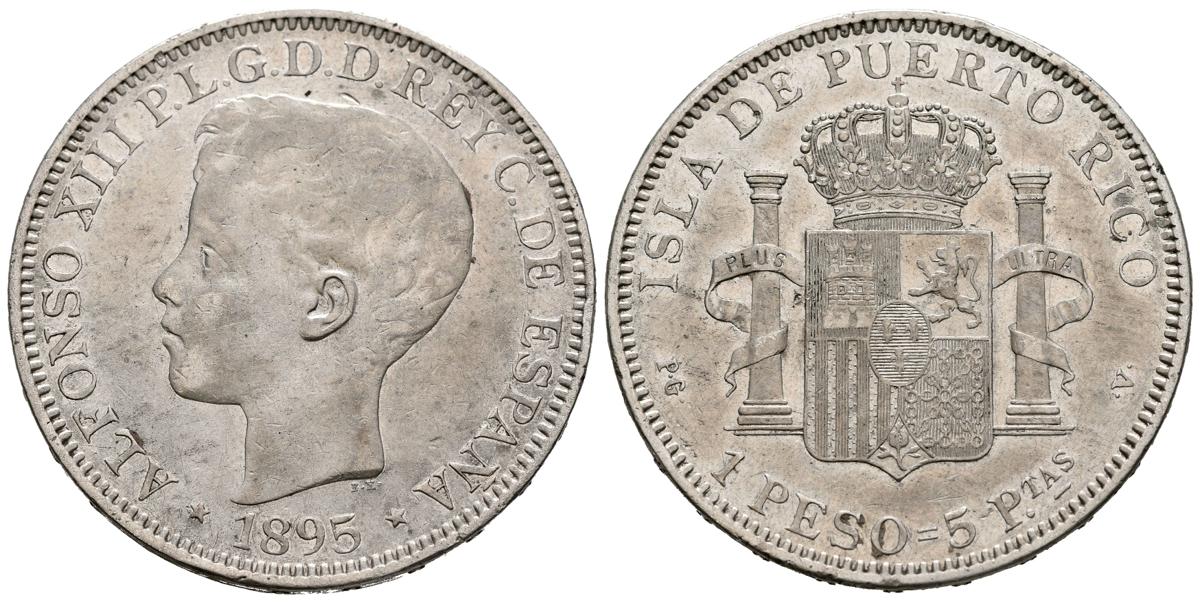 ALFONSO XIII (1885-1931). 1 Weight. (Ar. 24.81g/37mm). 1895. Puerto Rico PGV. (Cal-2019-128). Good Very Fine. Remnants of original shine. Stripes on the edge.