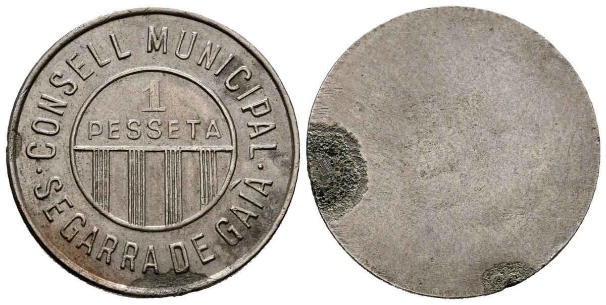 CIVIL WAR (1936-1939). 1 Peseta. (Cu-Ni. 3.54g/24mm). Segarra de Gaiá. (Cal-2019-37). Good Very Fine. reverse oxidation.
