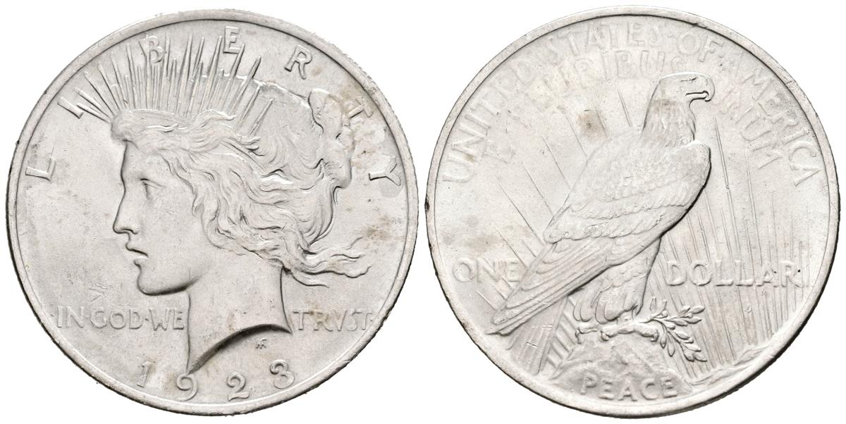 English UNITED STATES. 1 dollar. (Ar. 26.77g/38mm). 1923. Philadelphia. (Km#150). Extremely Fine. Slight marks.