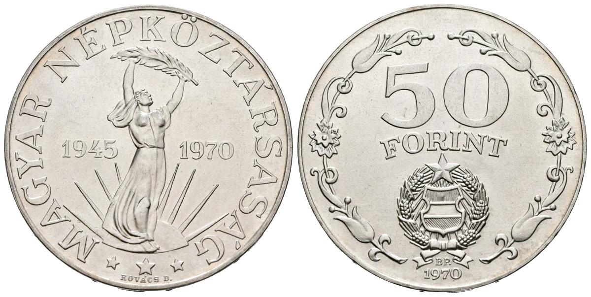 HUNGARY. 50 Florins. (Ar. 16.16g/34mm). 1970. 25th Anniversary of Liberation. (Km#592). Extremely Fine.