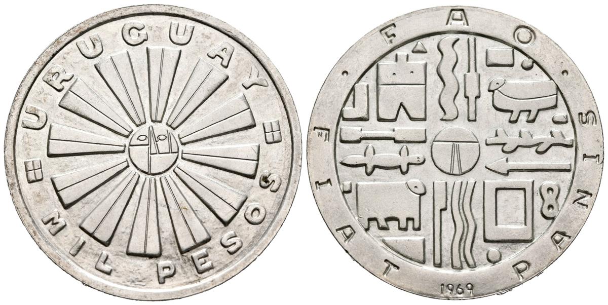 URUGUAY. 1000 pesos. (Ar. 24.99g/37mm). 1969. FAO. (Km#55). Extremely Fine.