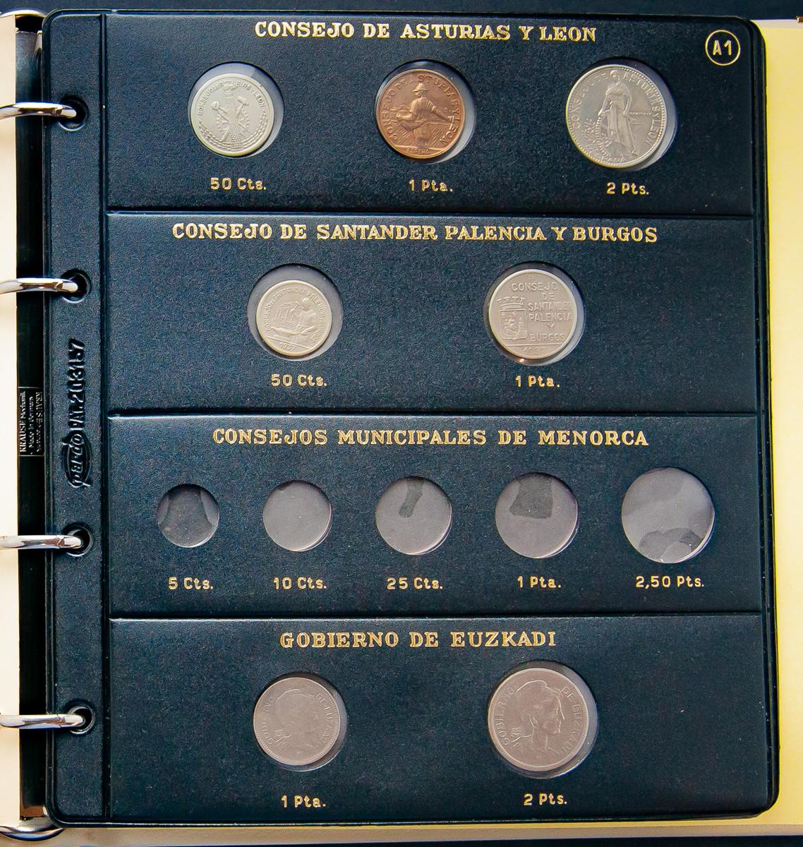 Interesting and extensive collection made up of hundreds of coins and presented in dozens of albums. The collection is the result of a lifetime of collecting from a single assignor and is made up of both Spanish and foreign coins. A good number of silver pieces stand out, especially in the modern Spanish part where we will find commemorative coins of 1,000, 2,000, 5,000 and 10,000 Pesetas (Cincuentines), Ecus (different values) and copies of Euros in silver (values of 12, 25 or 30). Also interesting are the Ibero-American Series of Dance and Typical Costumes, UNESCO World Heritage, Encounter of Two Worlds or Barcelona 92 Olympics, among others. The Spanish part is completed with sets and cases, including those issued by the FNMT: History of the Peseta, as well as a good number of issues of 1,500 and 2,000 Pesetas. In the foreign part, the variety of countries represented is high, with pieces from all corners of the planet mainly minted in the 20th century, highlighting a good number of Asian coins and an interesting collection of 1 and 5 North American cents from the end of the 19th century and beginning of the XX. Also included in this section are originals in silver. The lot is completed with series of Euros from different countries and dates. IMPORTANT: Although the vast majority of coins offered are original, replicas and manipulated coins are included in the collection. For this reason we recommend your physical examination since this lot does not admit return. ESSENTIAL TO EXAMINE.