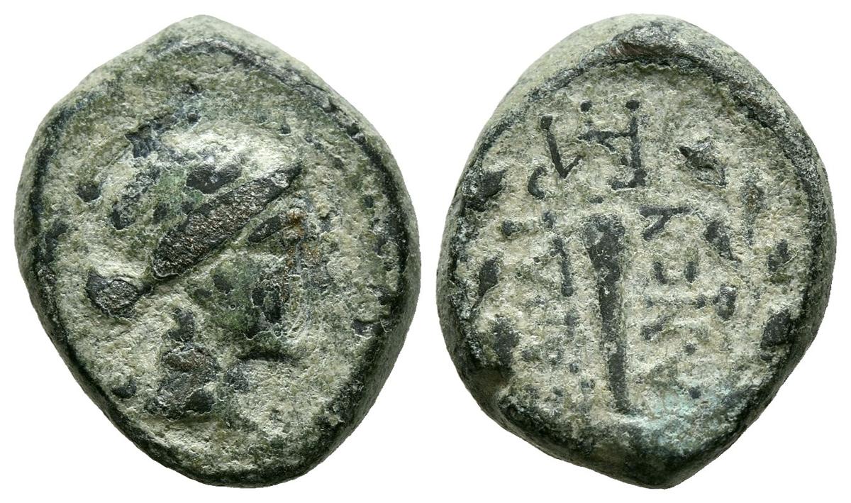 LYDIA, Sardis. Be16. (Ae. 4.25g/16mm). 113 BC-AD 14 (SNG Copenhagen 477 var). Obv: Laureate head of Apollo right. Rev: Club, Greek legend around, monogram in front, all within a laurel wreath. Almost Very Fine.
