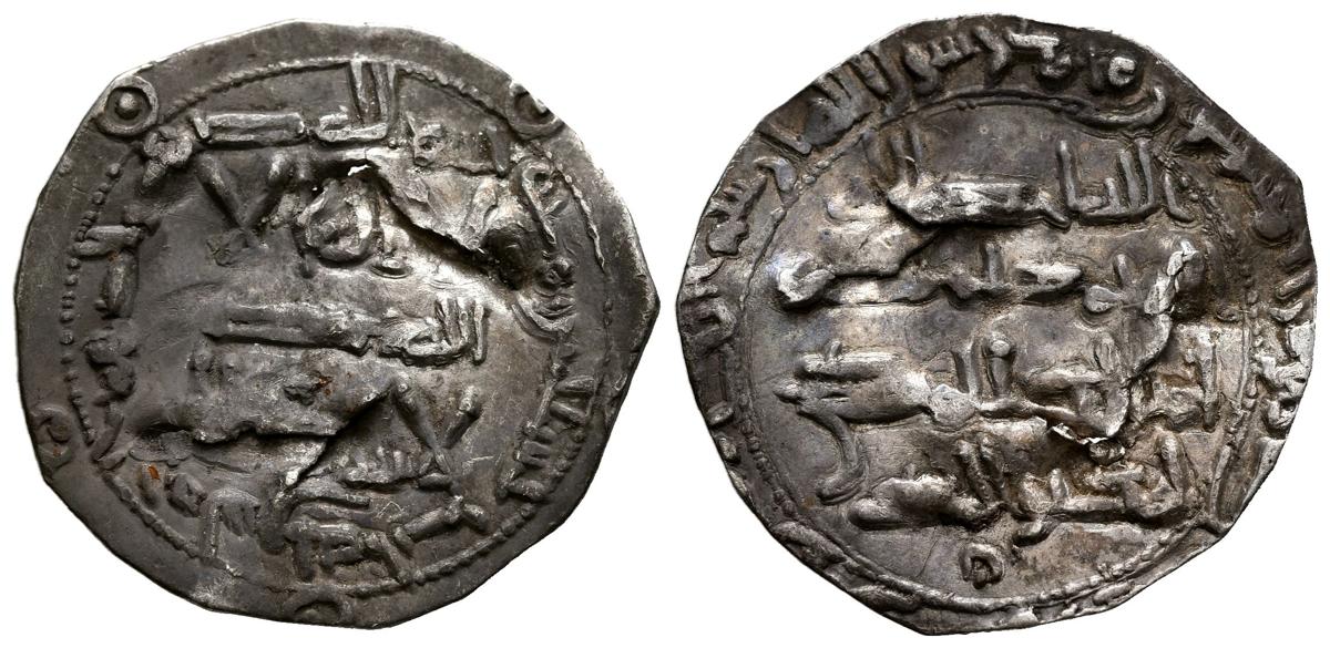 INDEPENDENT EMIRATE, Al-Hakam I. Dirham. (Ar. 2.03g/24mm). 193H. Al Andalus. (Vives 93; Frochoso 193.9). Staple perforation. Good Very Fine.