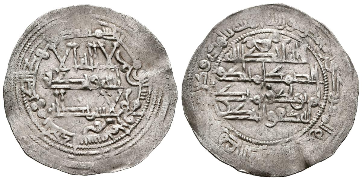 English INDEPENDENT EMIRATE, Muhammad I. Dirham. (Ar. 2.57g/29mm). 258 H. Al-Andalus. (Vives 278; Frocoso does not collect this decoration). Good Very Fine.
