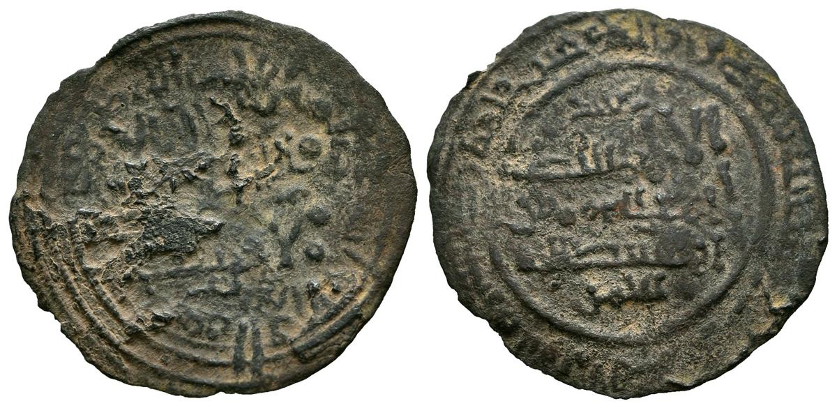 CALIPHATE OF CORDOBA, Al-Hakam II al-Mustansir. Dirham. (Ae. 0.93g/22mm). Madinat al-Zahra. Quoting Abd al-Rahman in II.A. Fake vintage copper. (Imitation of the type: Vives 449 corresponding to the year 351H). Very Fine.