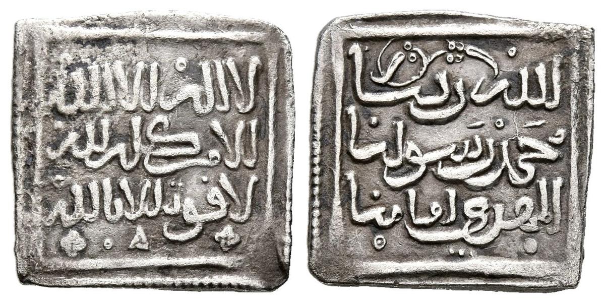 ALMOHADES, anonymous in the name of Imam Al-Mahdi. Dirham. (Ar. 1.48g/13mm). Mintmarks in IA triangle and Solomon's knots. (Vives 2088; Hazard 1101). Good Very Fine.