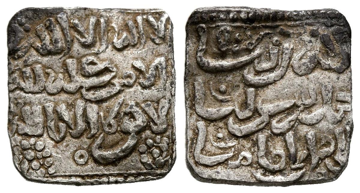 English ALMOHADES, Anonymous on behalf of al-Mahdi. Dirham. (Ar. 1.53g/13mm). No mint name, with two floral symbols below. (Vives 2088; Hazard 1101). Very Fine.