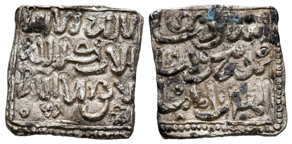 ALMOHADES, Anonymous on behalf of al-Mahdi. Dirham. (Ar. 1.43g/14mm). No mint name, with two floral symbols below. (Vives 2088; Hazard 1101). Almost Extremely Fine/ Good Very Fine.