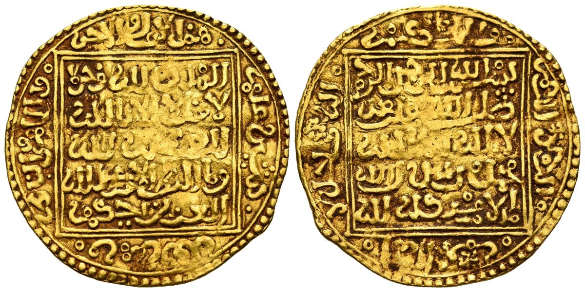MERENIES, Abu-Ya'qub Yusuf (685-706h). Dinar. (Aug. 4.60g/30mm). (Hazard 722; Album 524). Very Fine.