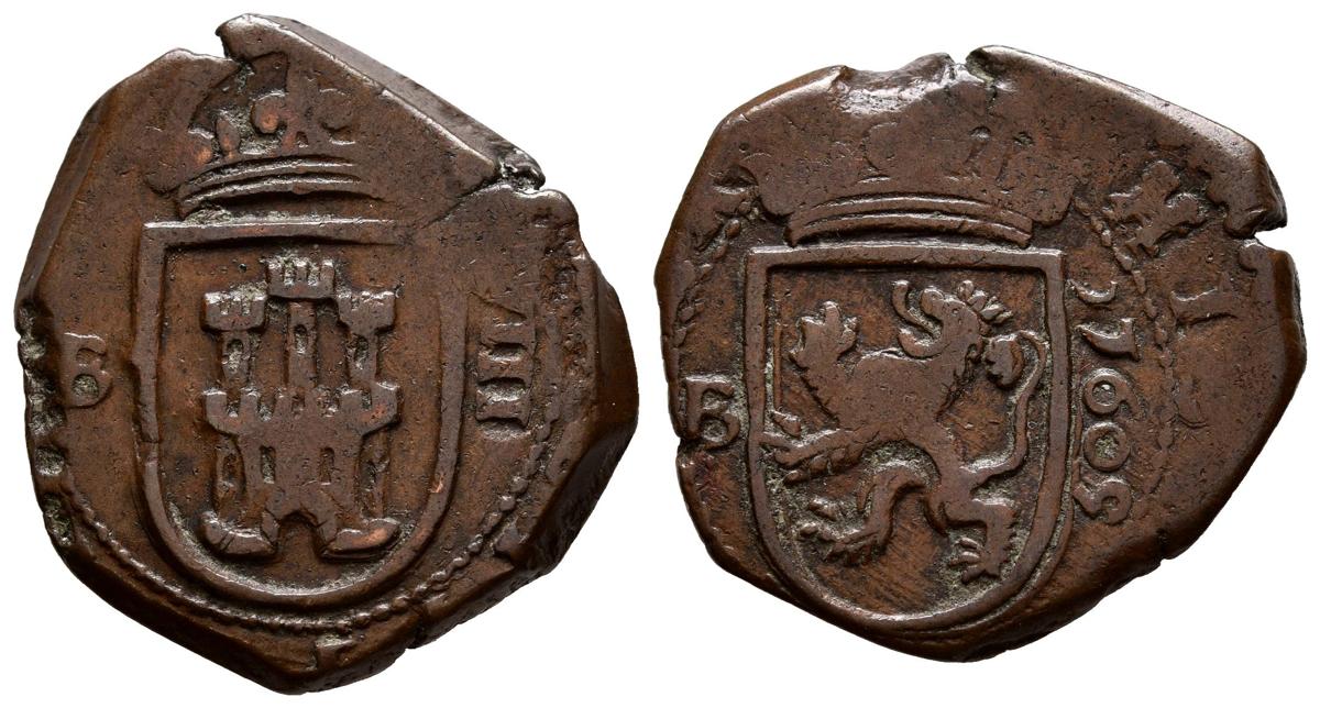 PHILIP III (1598-1621). 8 Maravedis (Ae. 6.38g/22mm). 1605. Burgos. (Cal-2019-293). Almost Very Fine.
