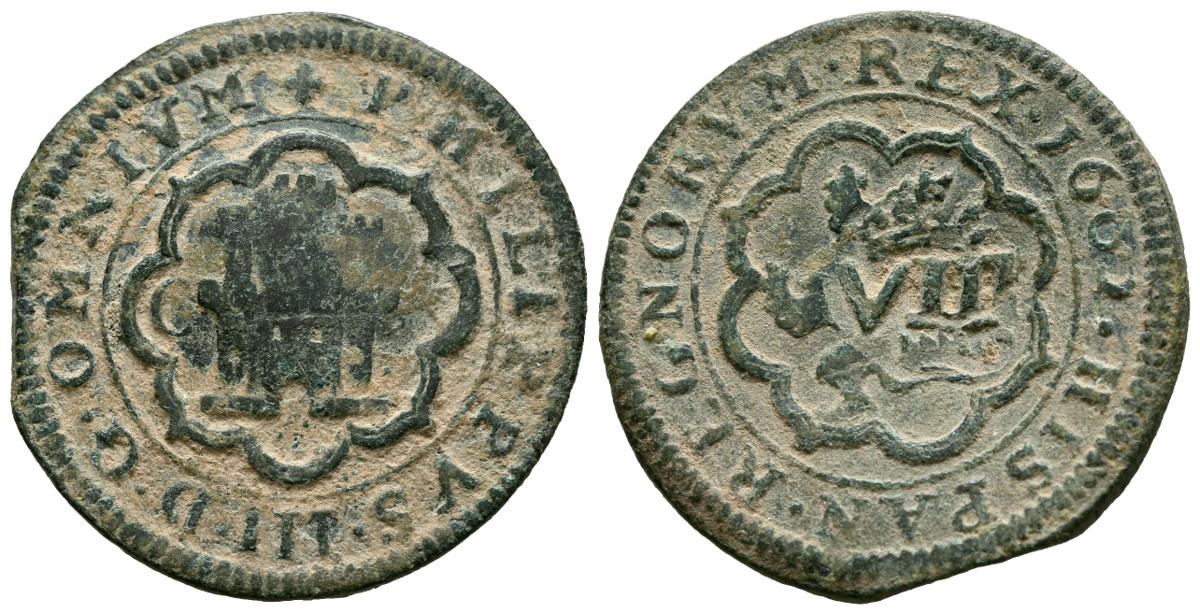 PHILIP III (1598-1621). 8 Wonders. (Ae. 5.78g/27mm). 1602. Segovia C. (Cal-2019-252). Very Fine. Countermark VIII on reverse.