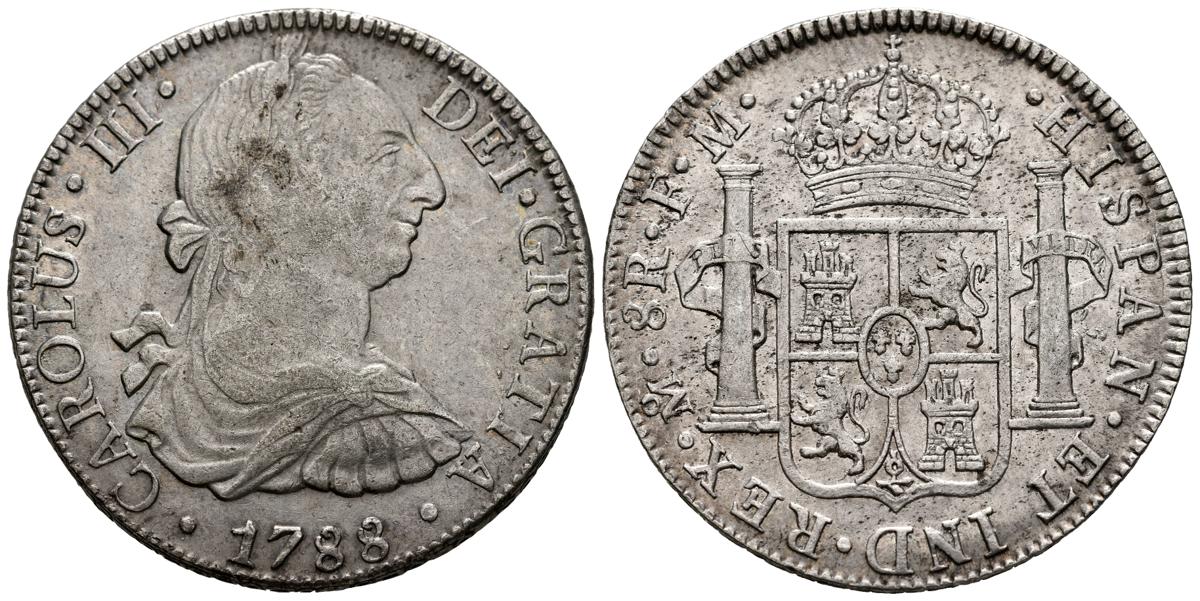 CARLOS III (1759-1788). 8 Reales. (Ar. 26.74g/39mm). 1788. Mexico FM. (Cal-2019-1132). Good Very Fine. Remnants of original shine. Nice specimen.