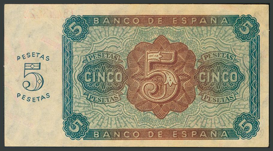 5 Pesetas. 10 de Agosto de 1937. Serie J. (Edifil 2017: 435a). EBC.