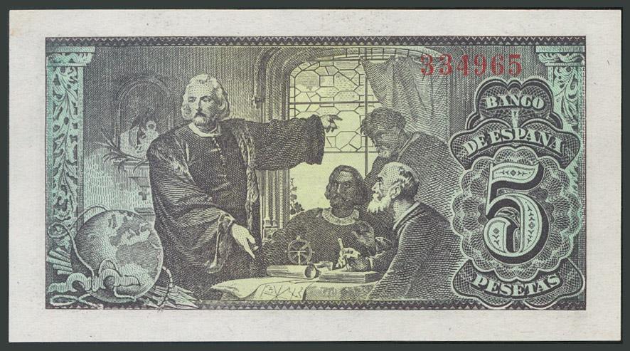 5 Pesetas. 13 de Febrero de 1943. Sin serie. (Edifil 2017: 446). SC.
