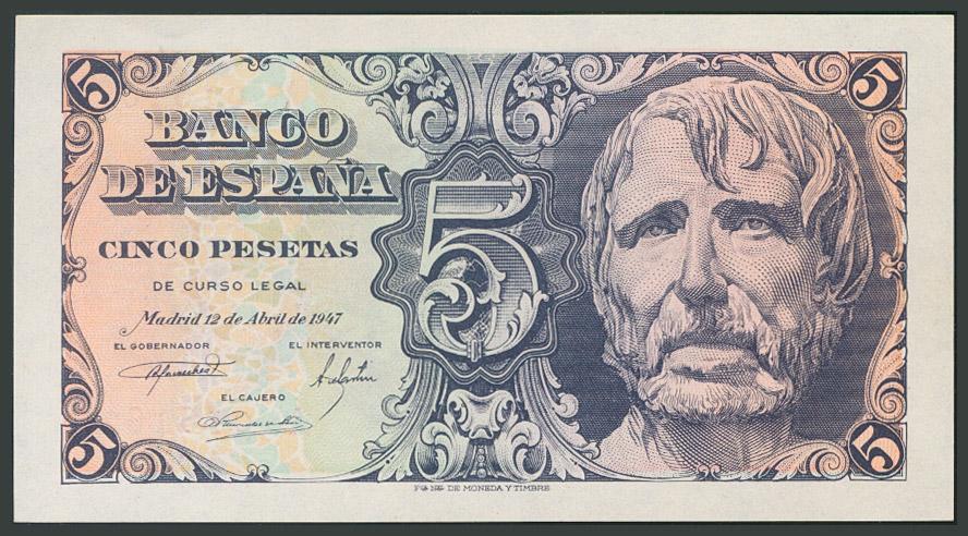 5 Pesetas. 12 de Abril de 1947. Serie A. (Edifil 2017: 454a). SC.
