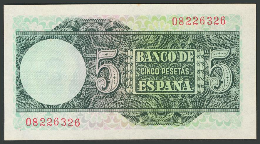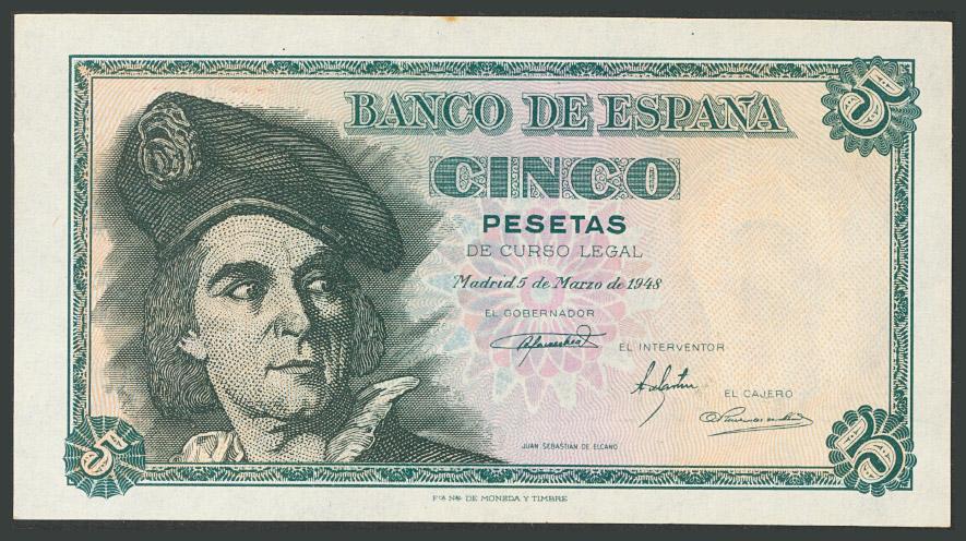 5 Pesetas. 5 de Marzo de 1948. Sin serie. Puntito de óxido en el margen superior. (Edifil 2017: 455). EBC+.