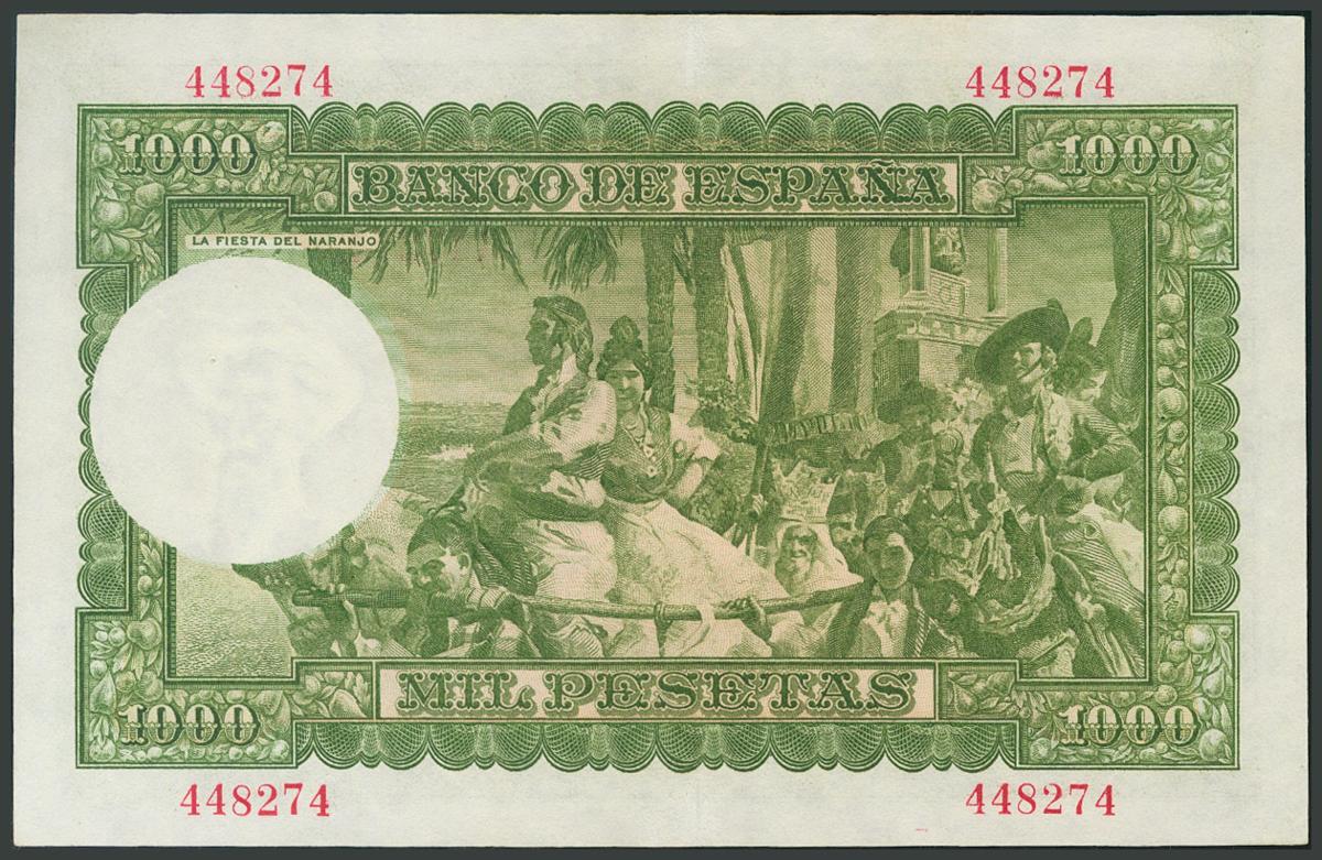 1000 Pesetas. 31 de Diciembre de 1951. Sin serie. Puntito de grapa a la izquierda. (Edifil 2017: 463). Conserva gran parte del apresto original. EBC-.